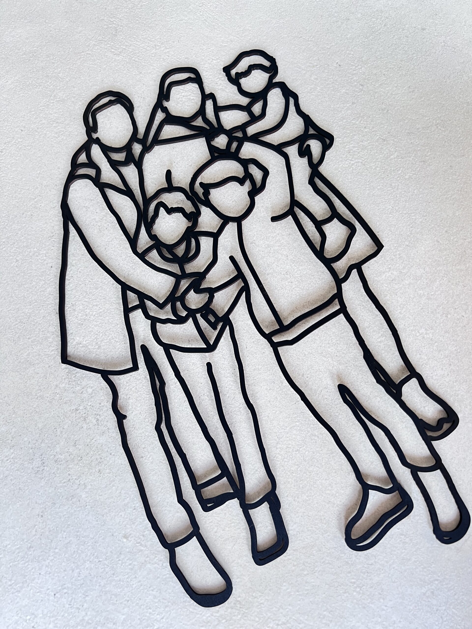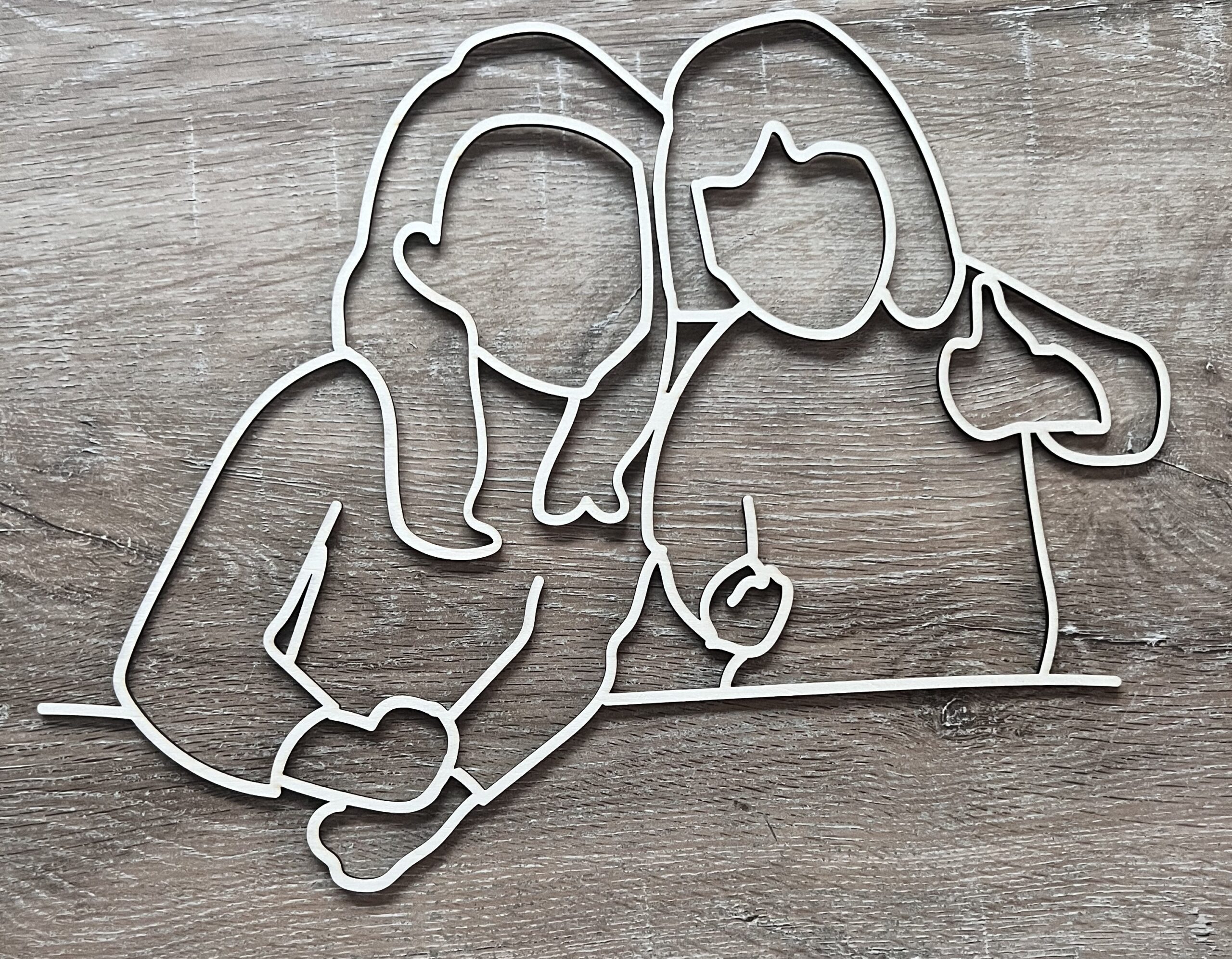 Schick uns ein Foto von einem besonderen Moment, allein, mit deinem Partner, Kindern oder der Familie (max. 6 Personen) und wir erstellen daraus eine minimalistische Linienzeichnung. Diese schneiden wir sorgfältig aus Holz, damit du ein stilvolles und warmes Kunstwerk für deine Wand erhältst.