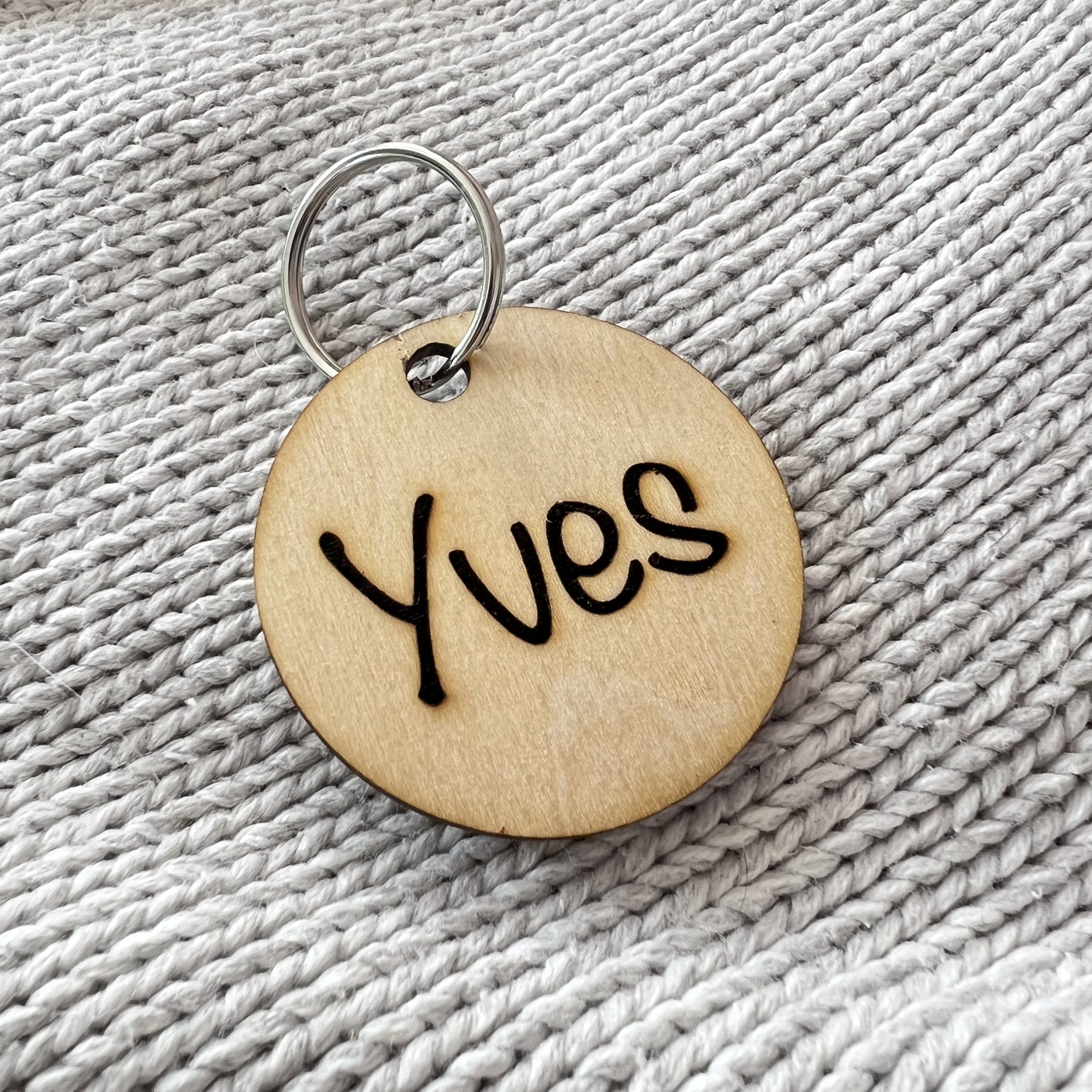 Holzschlüsselanhänger mit deinem Namen oder einem anderen gewünschten Text.